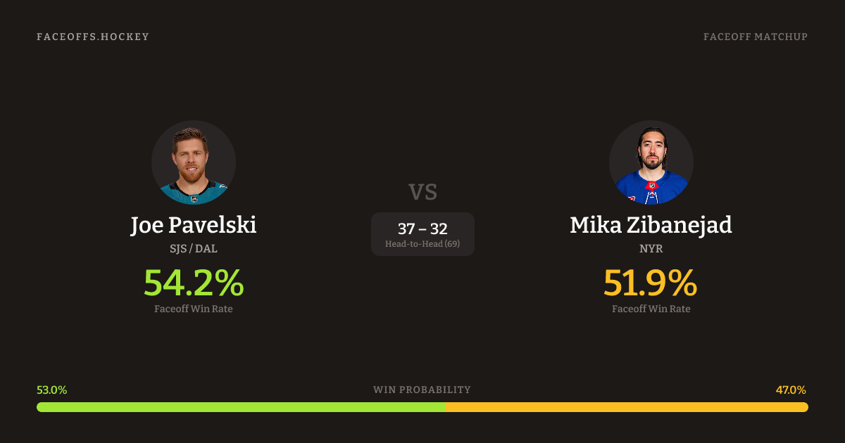 Joe Pavelski vs Mika Zibanejad — Faceoff Head-to-Head