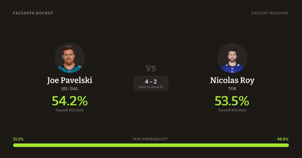 Joe Pavelski vs Nicolas Roy — Faceoff Head-to-Head