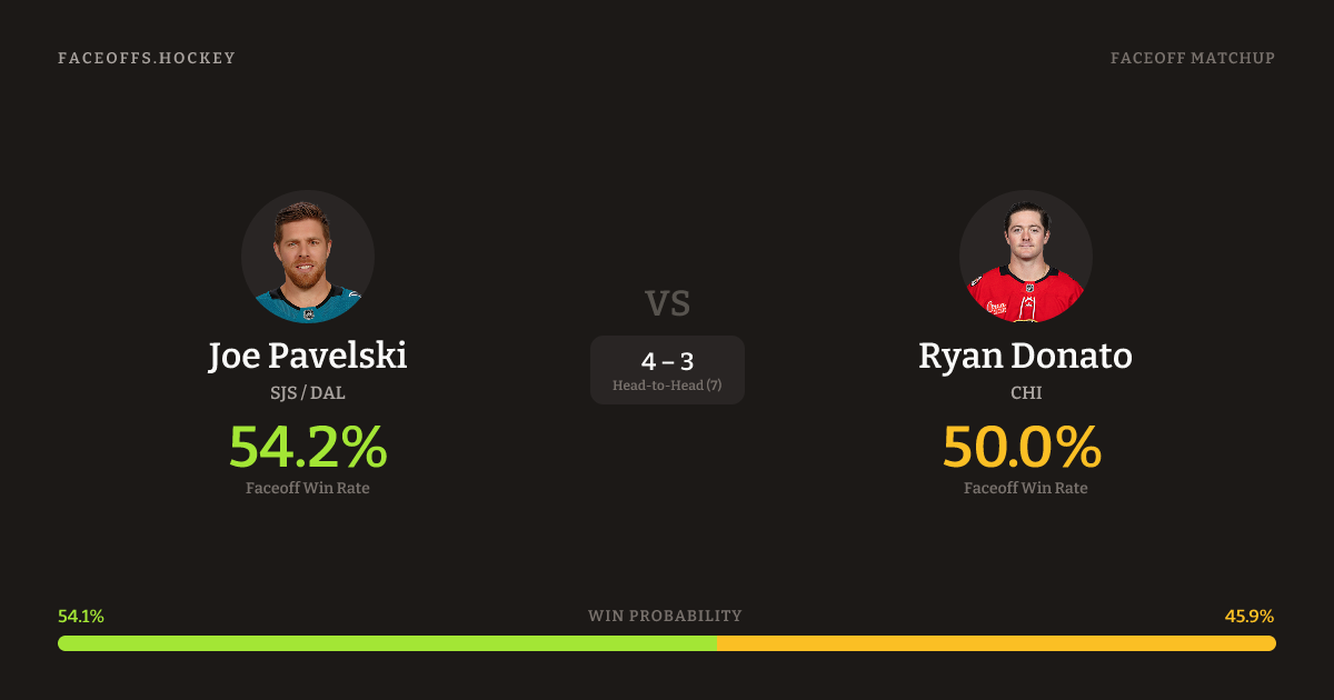 Joe Pavelski vs Ryan Donato — Faceoff Head-to-Head