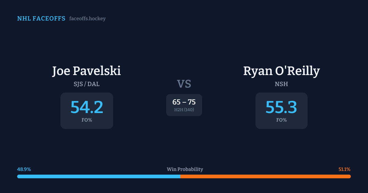 Joe Pavelski vs Ryan O'Reilly — Faceoff Head-to-Head