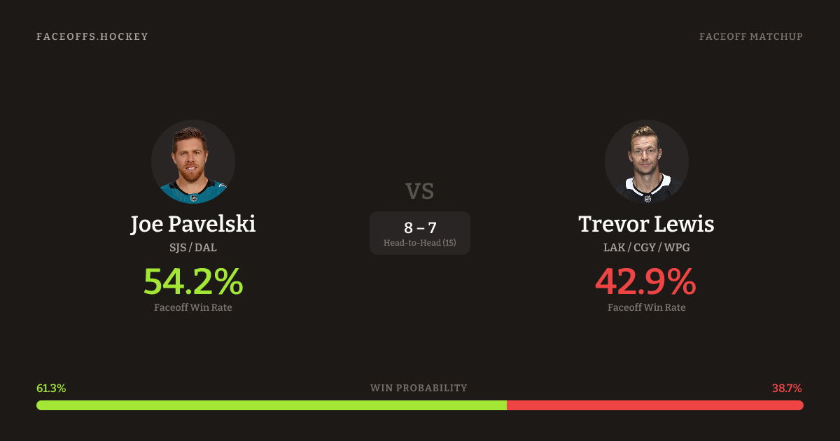 Joe Pavelski vs Trevor Lewis — Faceoff Head-to-Head