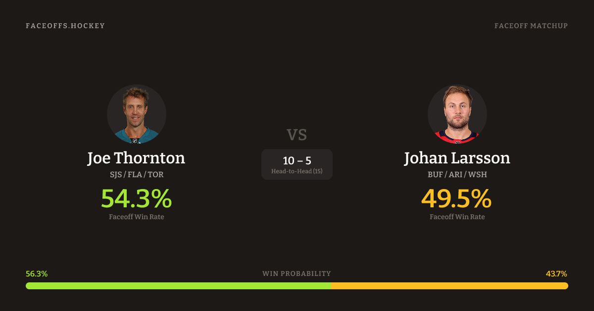 Joe Thornton vs Johan Larsson — Faceoff Head-to-Head