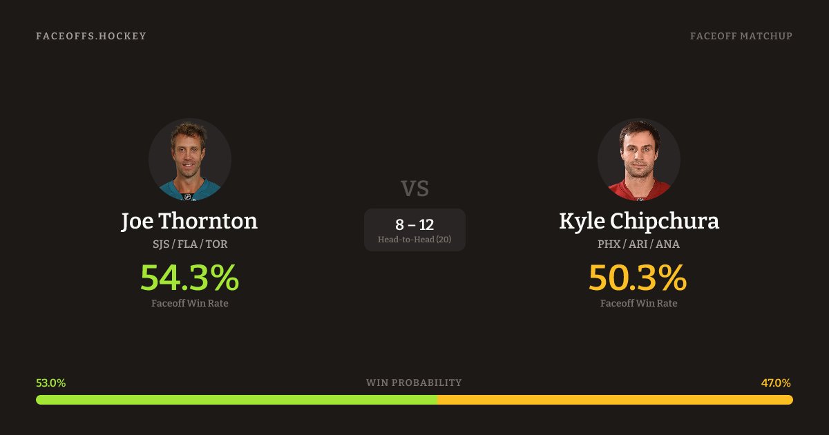 Joe Thornton vs Kyle Chipchura — Faceoff Head-to-Head