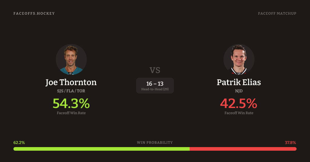 Joe Thornton vs Patrik Elias — Faceoff Head-to-Head