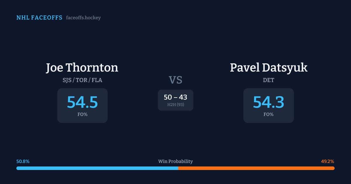 Joe Thornton vs Pavel Datsyuk — Faceoff Head-to-Head