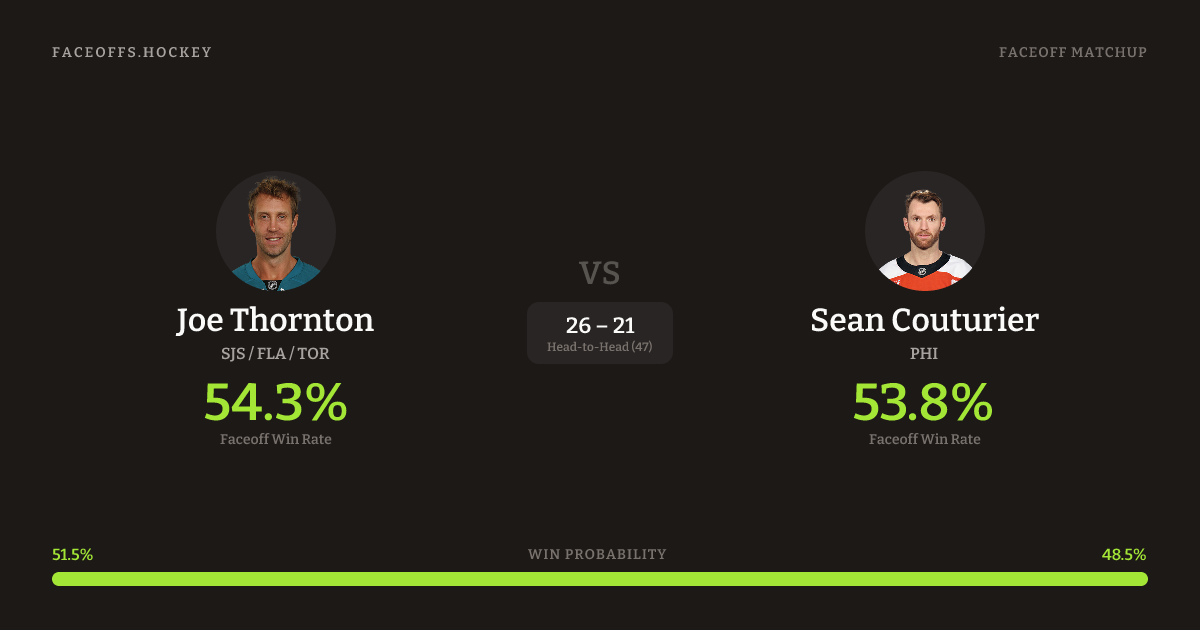 Joe Thornton vs Sean Couturier — Faceoff Head-to-Head
