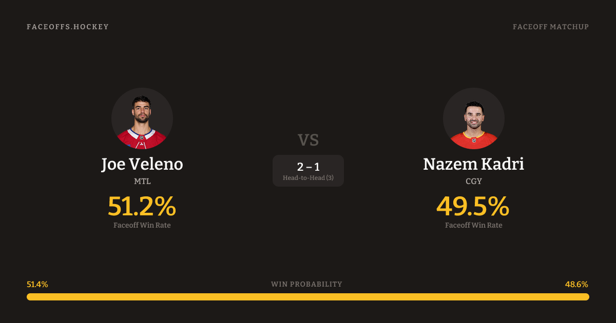 Joe Veleno vs Nazem Kadri — Faceoff Head-to-Head