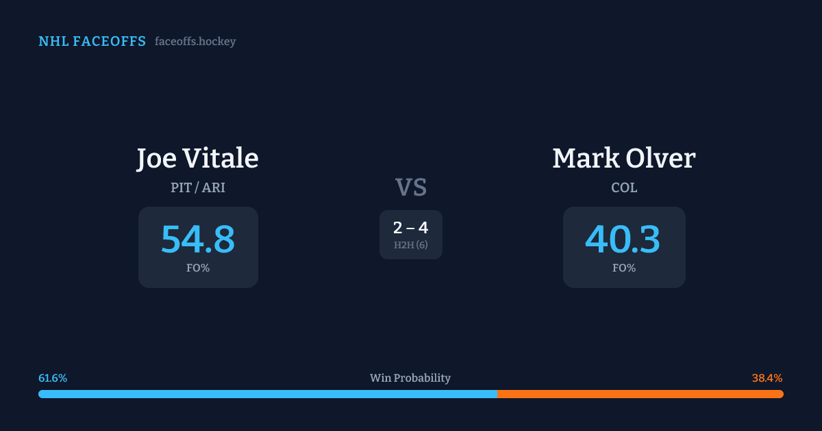 Joe Vitale vs Mark Olver — Faceoff Head-to-Head
