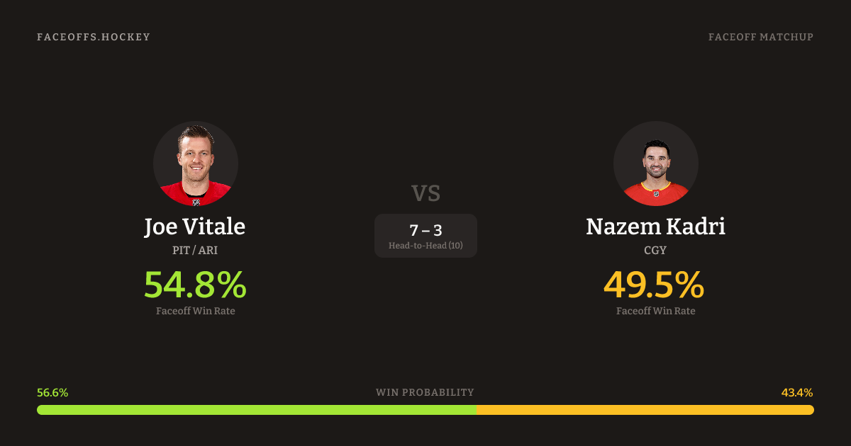 Joe Vitale vs Nazem Kadri — Faceoff Head-to-Head
