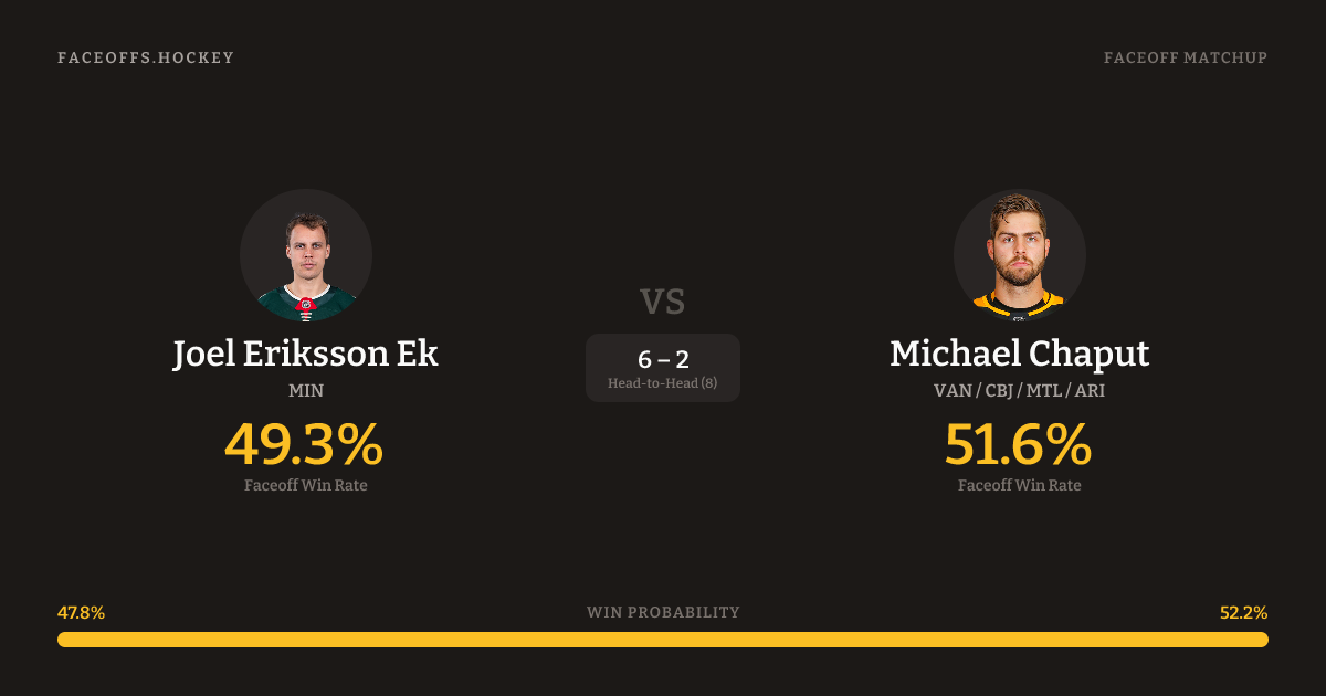 Joel Eriksson Ek vs Michael Chaput — Faceoff Head-to-Head