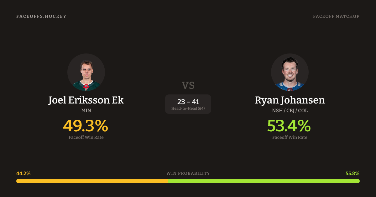 Joel Eriksson Ek vs Ryan Johansen — Faceoff Head-to-Head