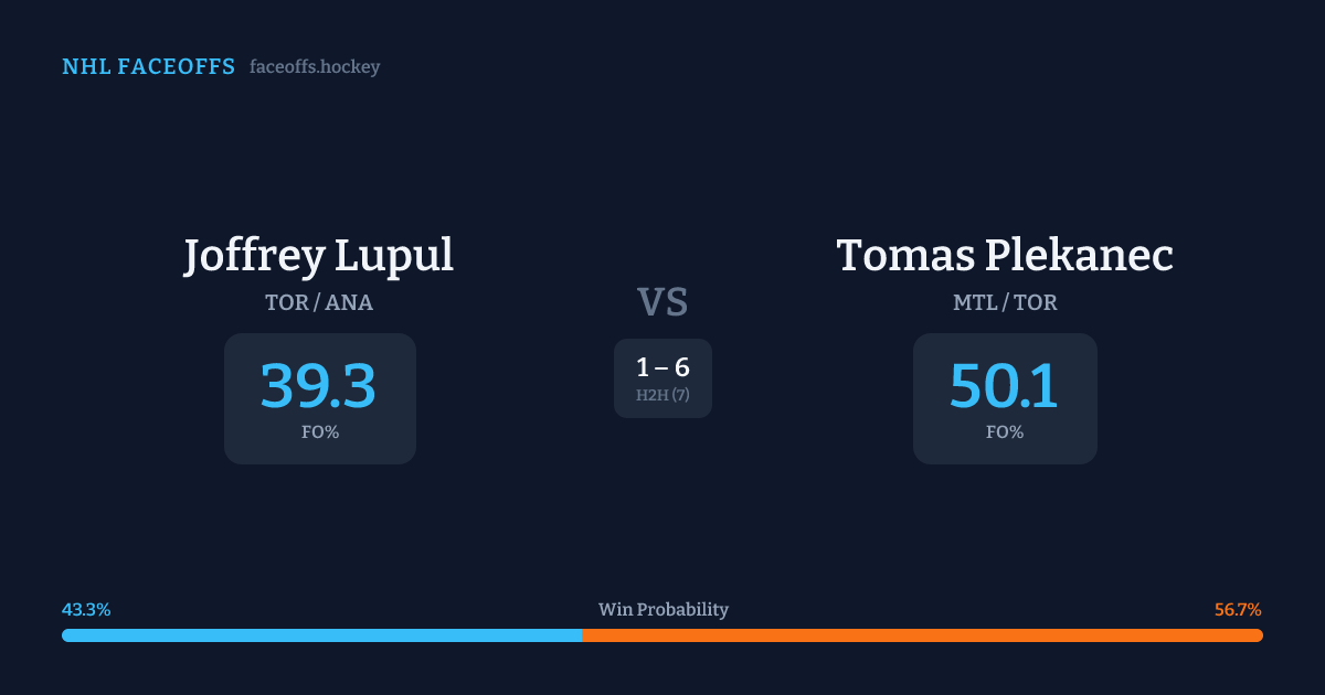 Joffrey Lupul vs Tomas Plekanec — Faceoff Head-to-Head