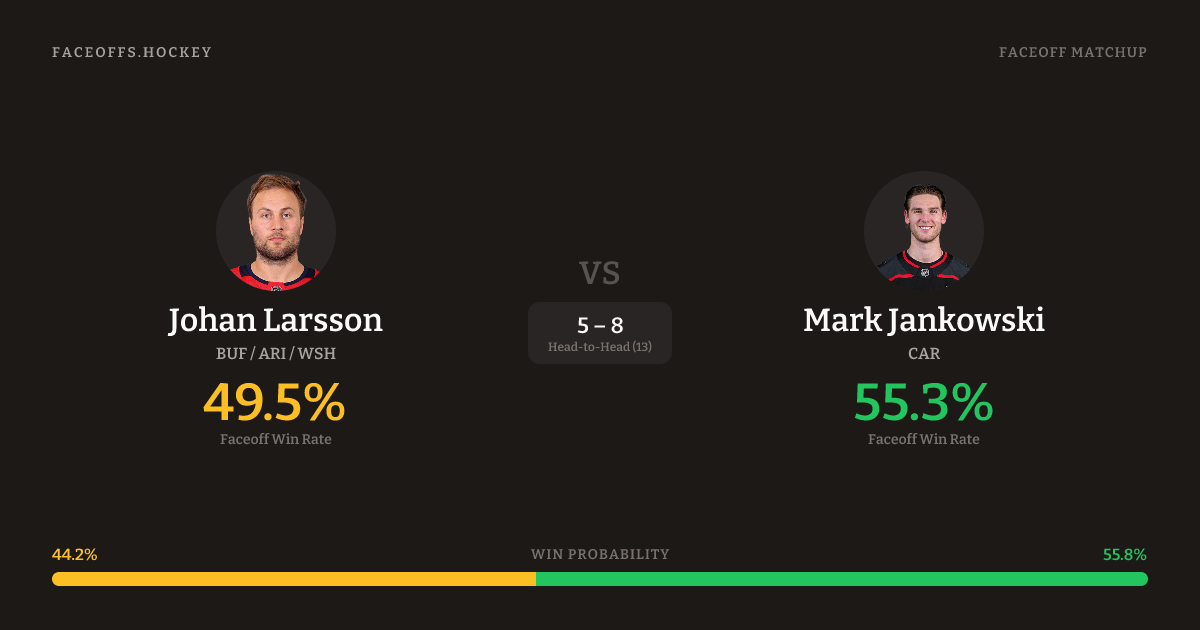 Johan Larsson vs Mark Jankowski — Faceoff Head-to-Head