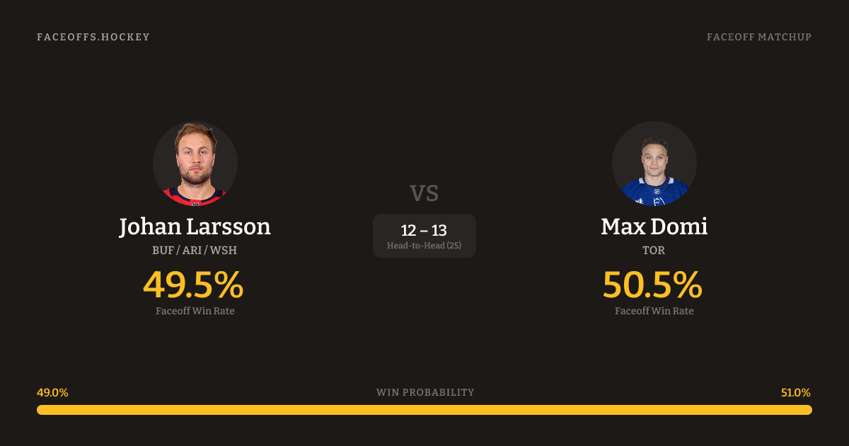 Johan Larsson vs Max Domi — Faceoff Head-to-Head