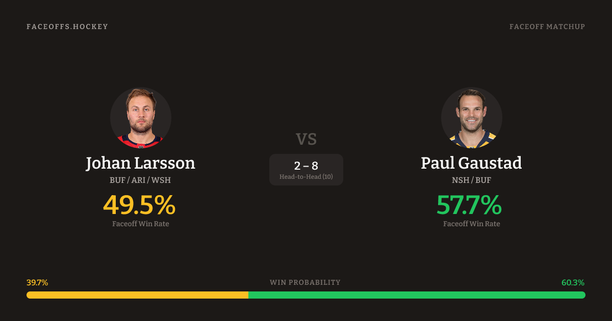 Johan Larsson vs Paul Gaustad — Faceoff Head-to-Head
