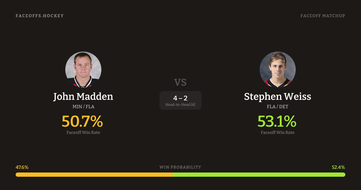 John Madden vs Stephen Weiss — Faceoff Head-to-Head