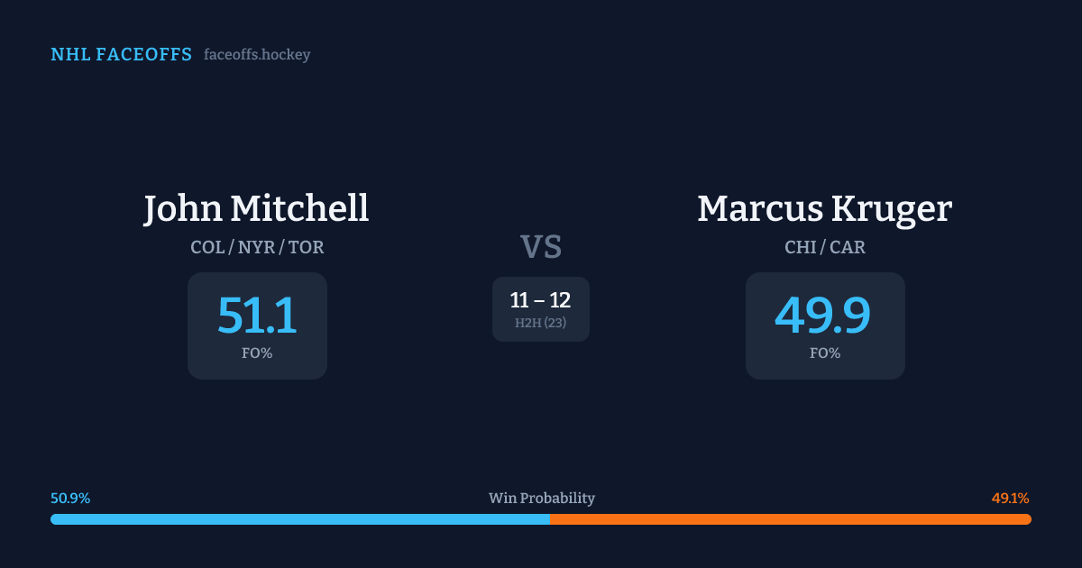 John Mitchell vs Marcus Kruger — Faceoff Head-to-Head