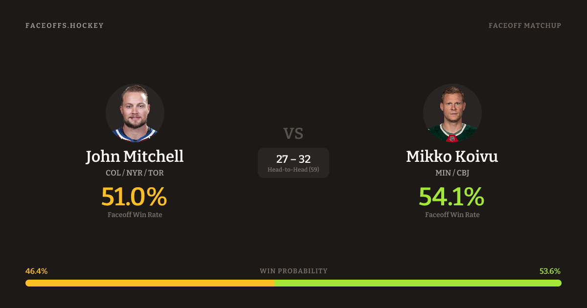 John Mitchell vs Mikko Koivu — Faceoff Head-to-Head