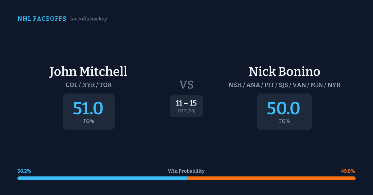 John Mitchell vs Nick Bonino — Faceoff Head-to-Head