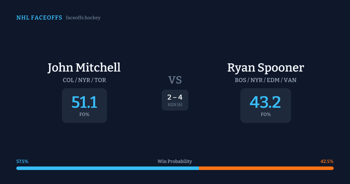 John Mitchell vs Ryan Spooner — Faceoff Head-to-Head