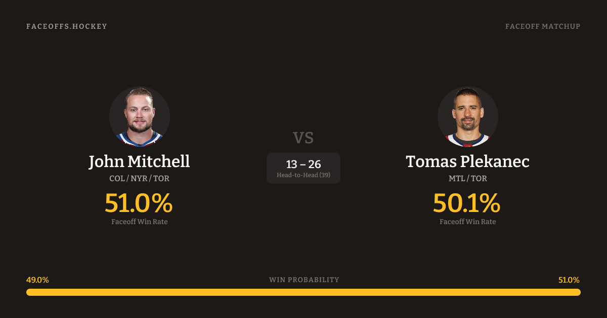 John Mitchell vs Tomas Plekanec — Faceoff Head-to-Head