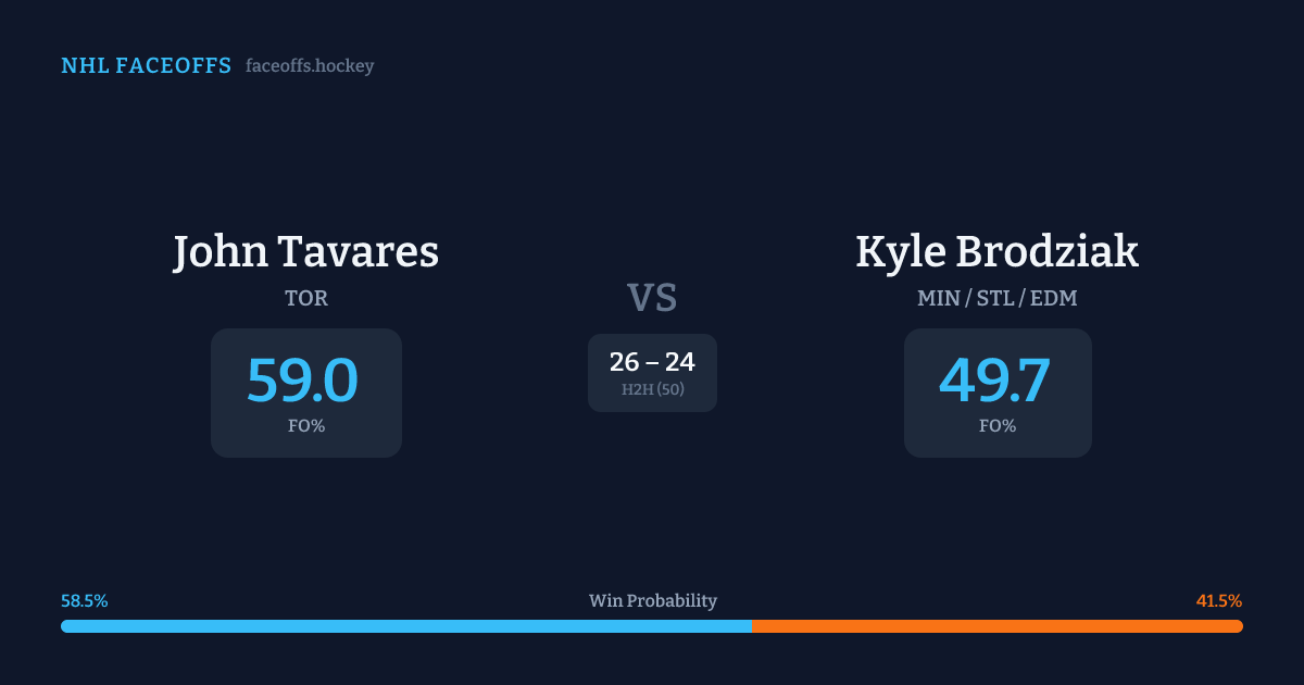 John Tavares vs Kyle Brodziak — Faceoff Head-to-Head
