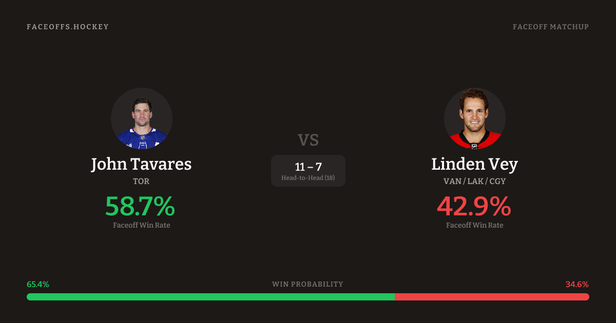 John Tavares vs Linden Vey — Faceoff Head-to-Head