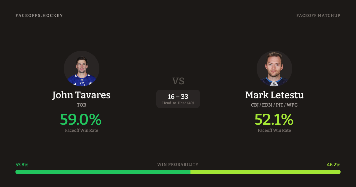 John Tavares vs Mark Letestu — Faceoff Head-to-Head