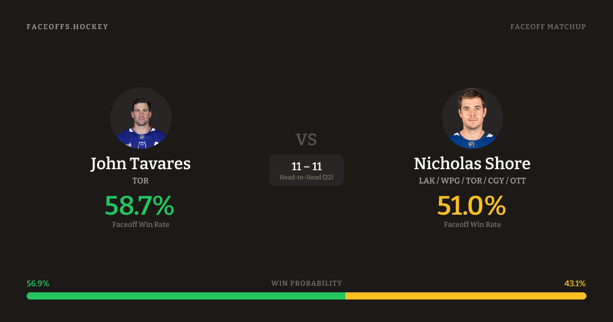 John Tavares vs Nicholas Shore — Faceoff Head-to-Head