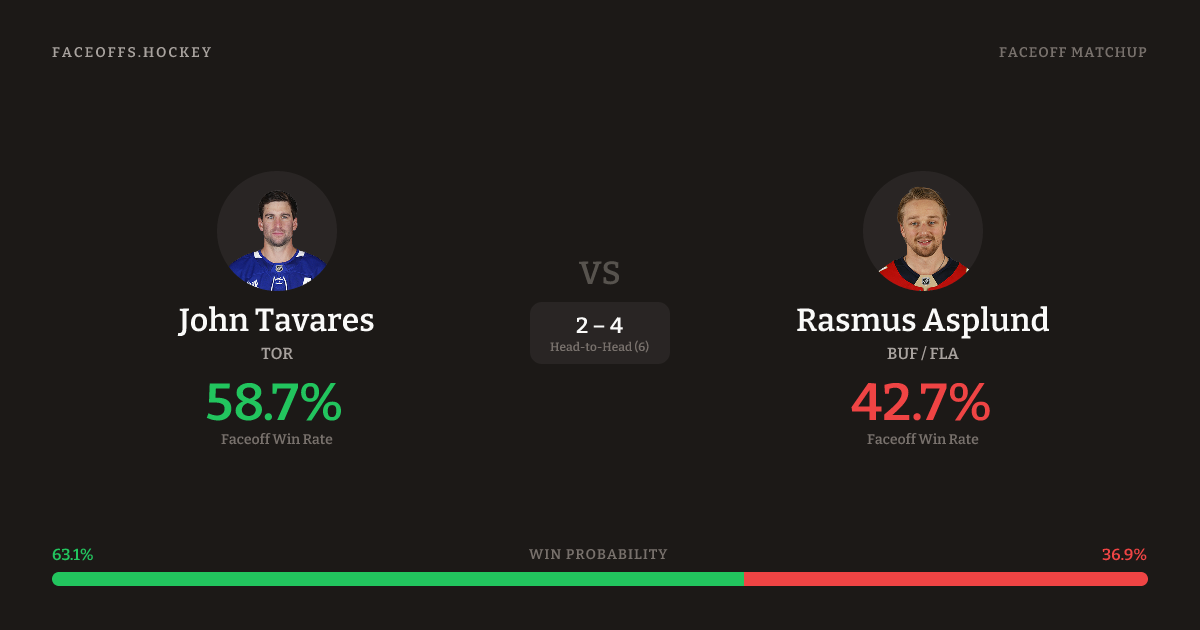 John Tavares vs Rasmus Asplund — Faceoff Head-to-Head