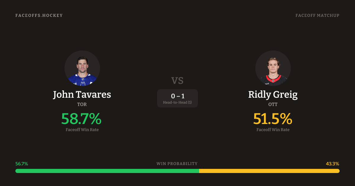 John Tavares vs Ridly Greig — Faceoff Head-to-Head