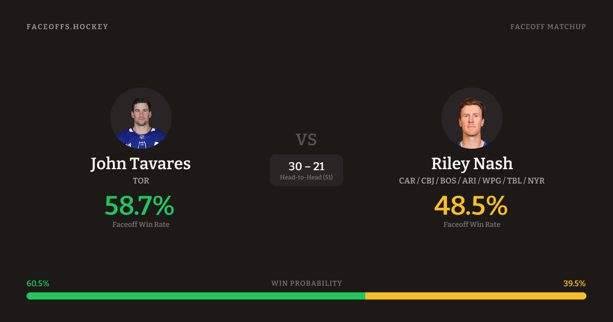 John Tavares vs Riley Nash — Faceoff Head-to-Head