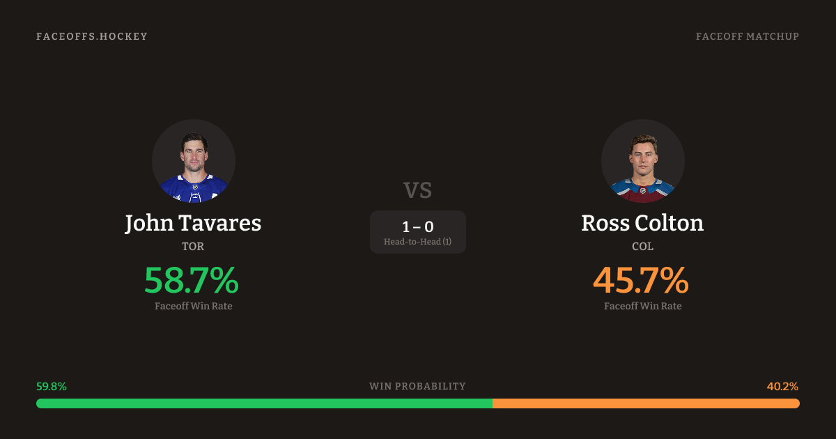 John Tavares vs Ross Colton — Faceoff Head-to-Head