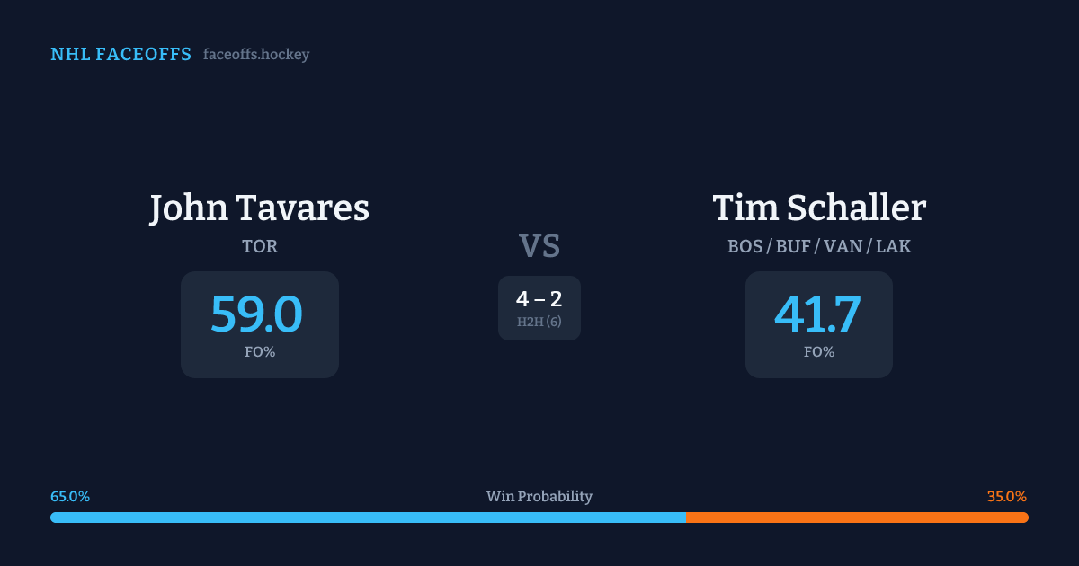 John Tavares vs Tim Schaller — Faceoff Head-to-Head