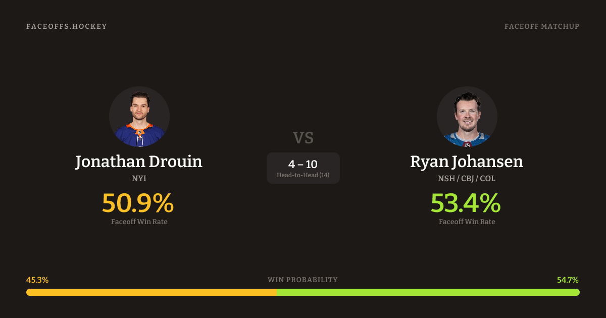 Jonathan Drouin vs Ryan Johansen — Faceoff Head-to-Head