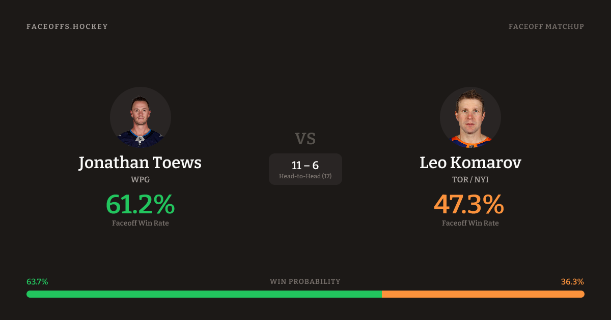 Jonathan Toews vs Leo Komarov — Faceoff Head-to-Head