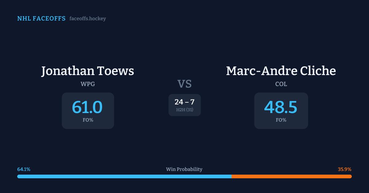 Jonathan Toews vs Marc-Andre Cliche — Faceoff Head-to-Head