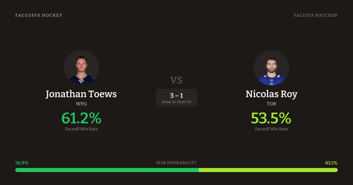 Jonathan Toews vs Nicolas Roy — Faceoff Head-to-Head