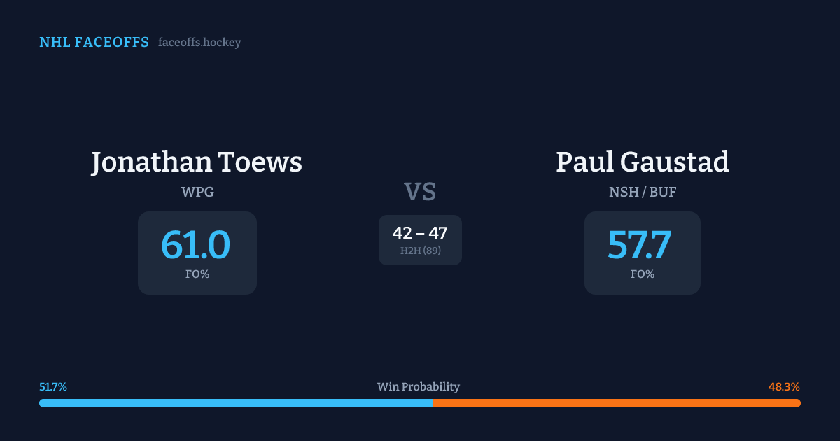 Jonathan Toews vs Paul Gaustad — Faceoff Head-to-Head