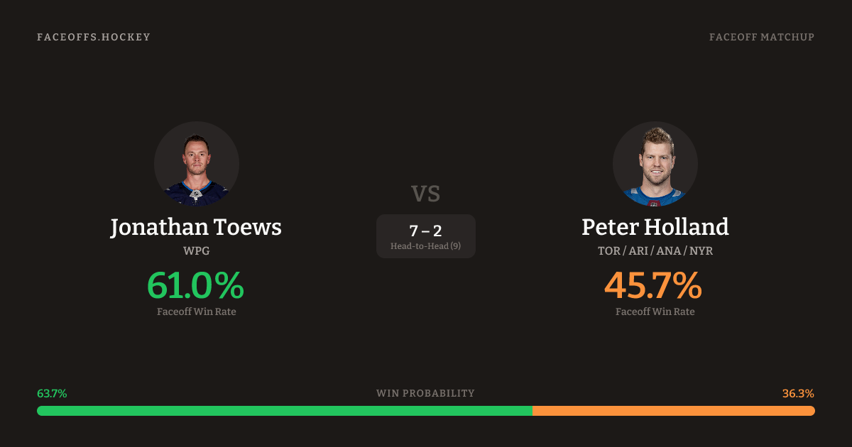 Jonathan Toews vs Peter Holland — Faceoff Head-to-Head