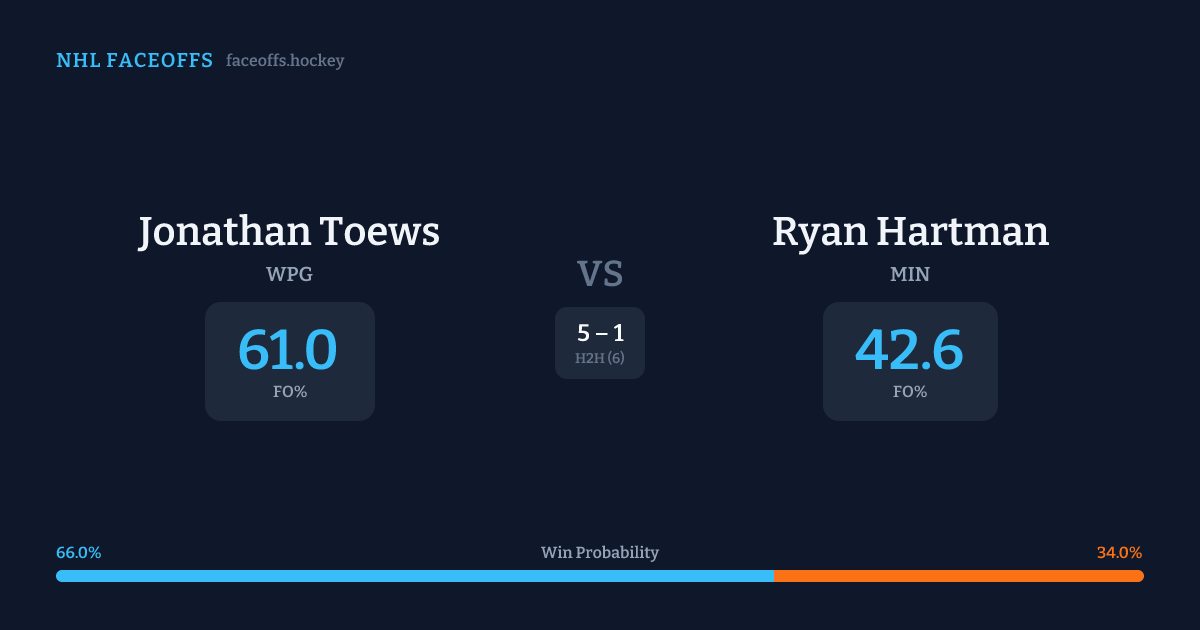 Jonathan Toews vs Ryan Hartman — Faceoff Head-to-Head