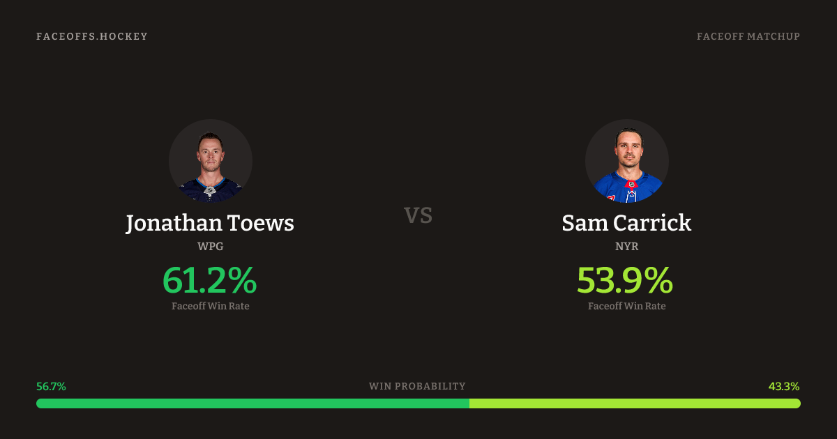 Jonathan Toews vs Sam Carrick — Faceoff Head-to-Head