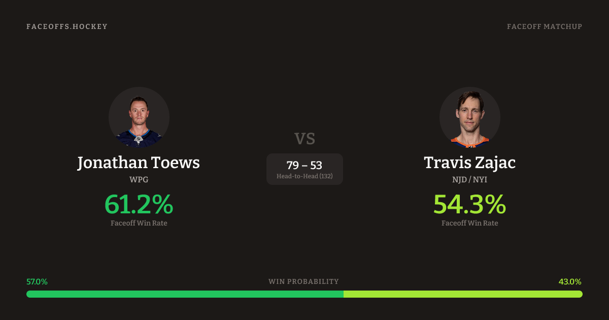 Jonathan Toews vs Travis Zajac — Faceoff Head-to-Head