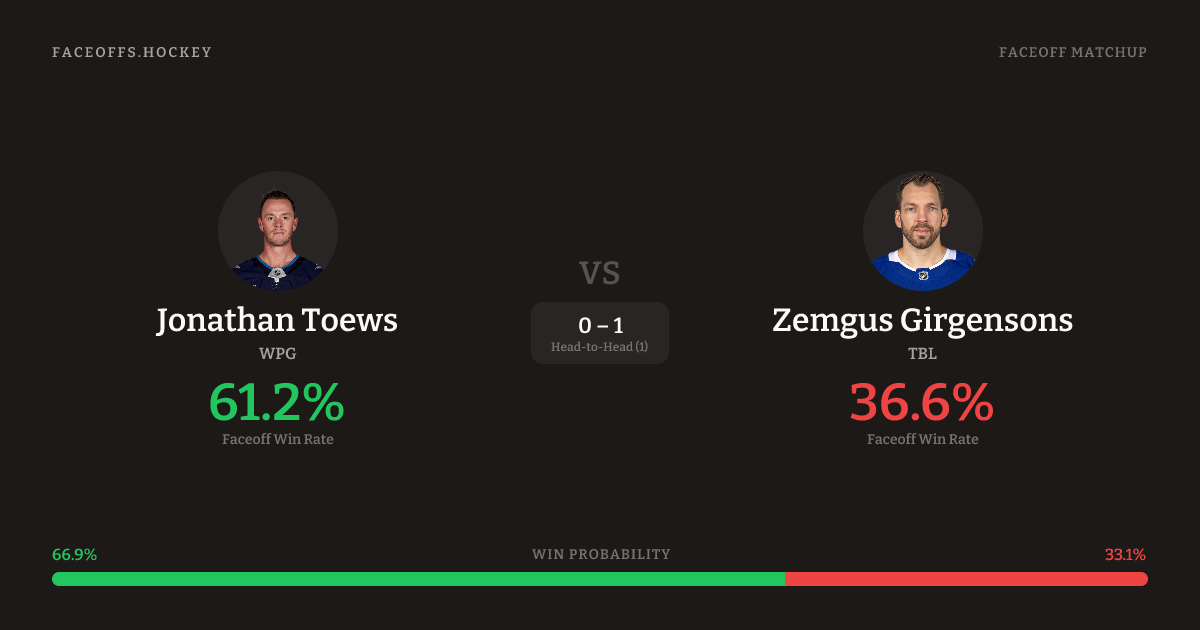 Jonathan Toews vs Zemgus Girgensons — Faceoff Head-to-Head