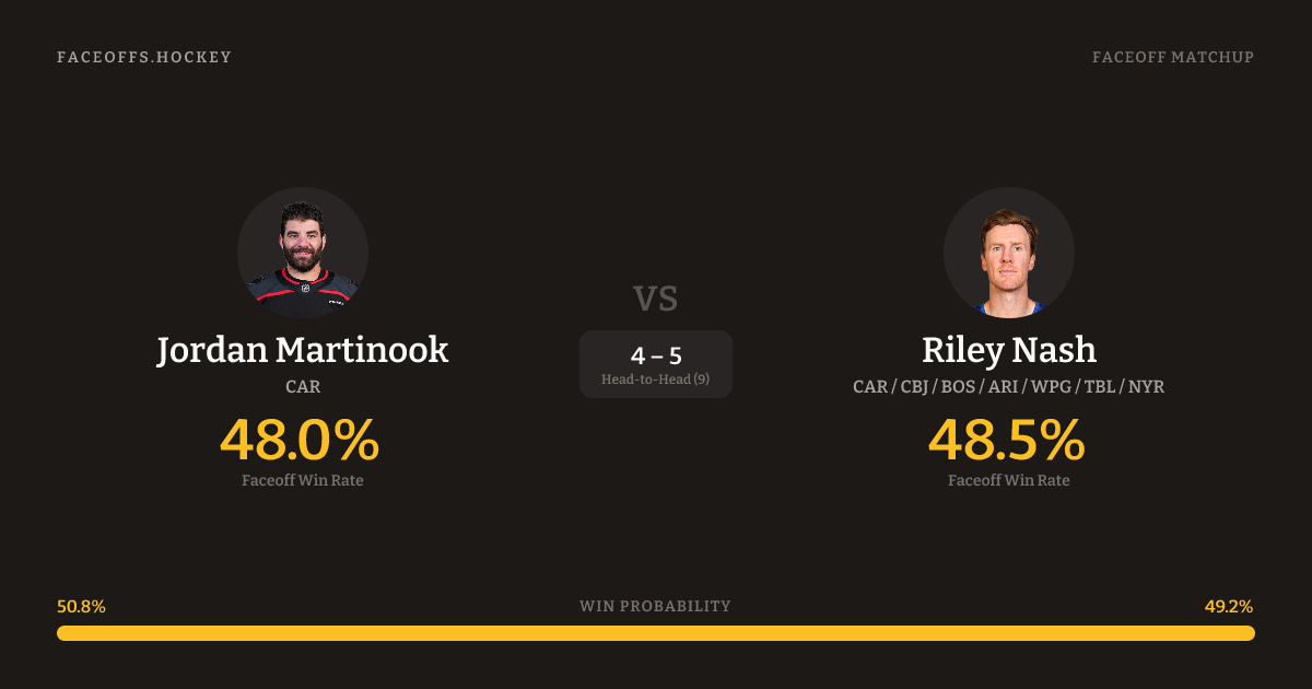 Riley Nash holds a +2.7% FO% edge overall.
