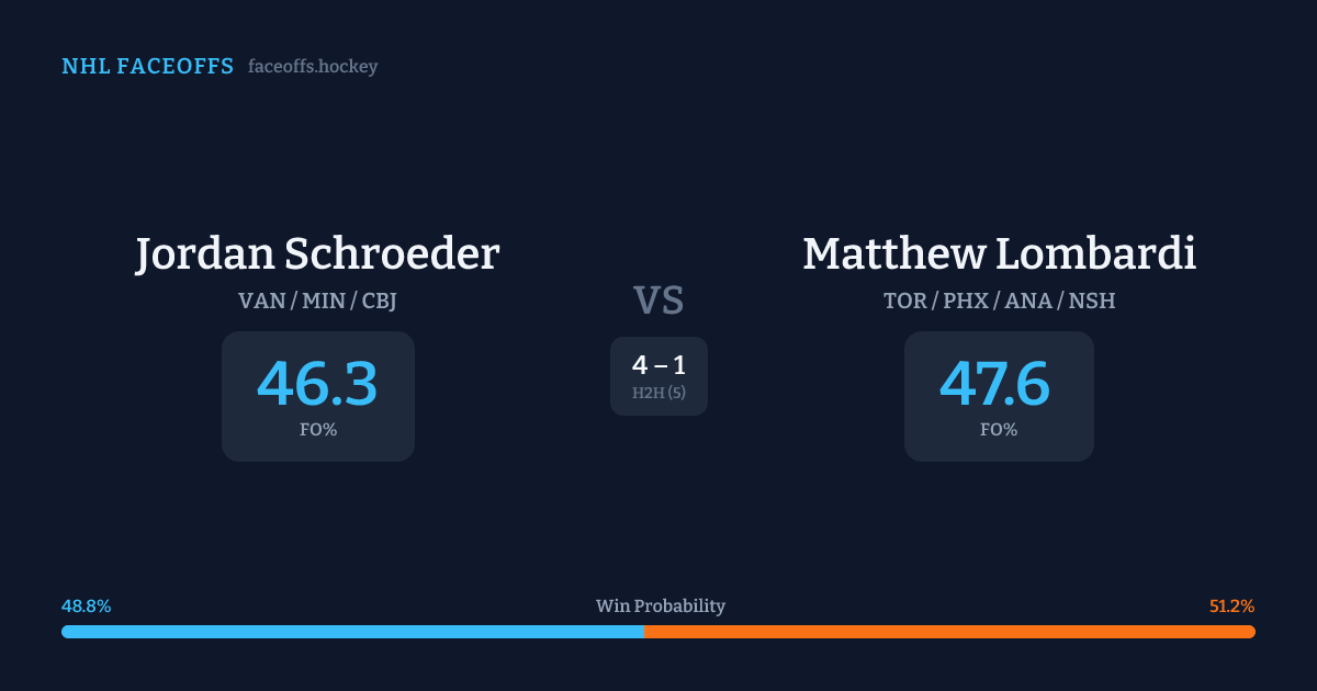 Jordan Schroeder vs Matthew Lombardi — Faceoff Head-to-Head