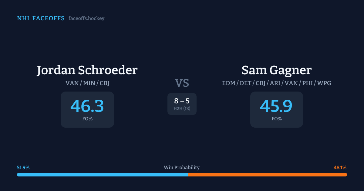 Jordan Schroeder vs Sam Gagner — Faceoff Head-to-Head