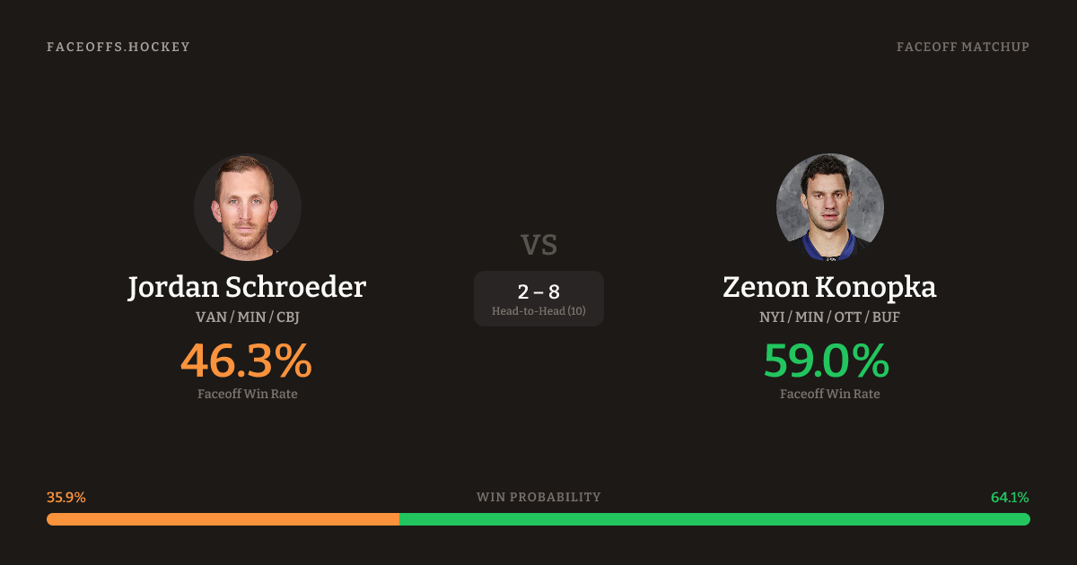 Jordan Schroeder vs Zenon Konopka — Faceoff Head-to-Head
