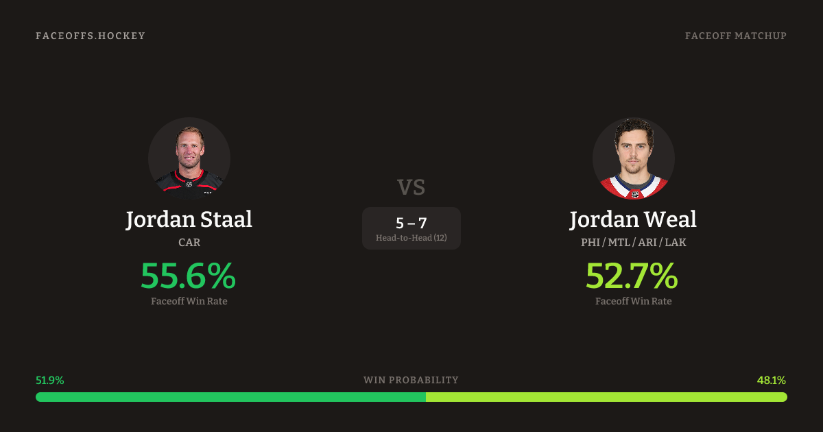 Jordan Staal vs Jordan Weal — Faceoff Head-to-Head