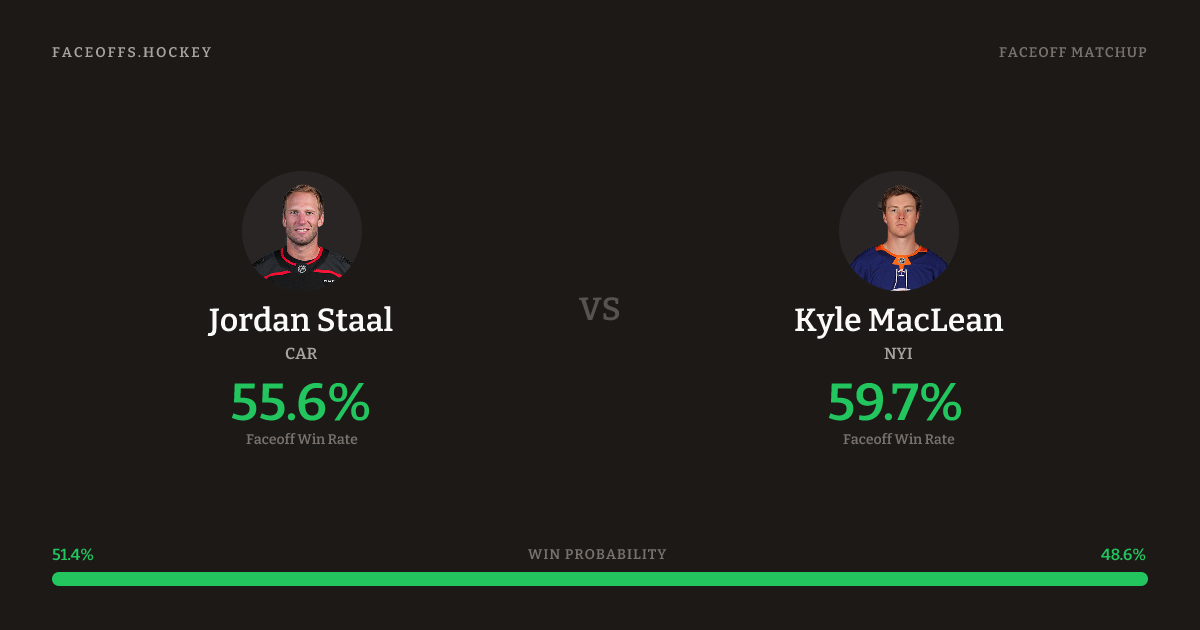 Jordan Staal vs Kyle MacLean — Faceoff Head-to-Head